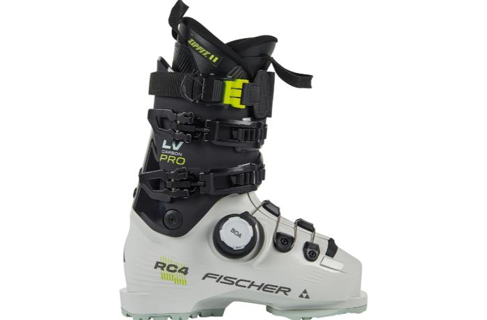 Let's decode that cipher. The Carbon refers to the cuff material where the polyurethane is injected with a carbon additive for increased rigidity, responsiveness and reduced weight--and testers loved the cuff's shape, snug wrap and high energy rebound energy generated by a long-travel flex feel. The Pro means it gets paid to be badass, we think. The LV, as we all know, means low volume and testers say it is, in places (and we'll get to that in a moment), and it bears a 97mm last rating when other narrows in the RC4 line-up are only 98mm--so this one is even more LV, pro-level. The 115+ lets us know that this is almost a 120, but perhaps Fischer didn't want to scare off a potential women's audience, since the boot crosses over, unisex-style, available from a 22.5 all the way to a 30.5. The BOA means, well sure, you get it--but it's just on the lower shell here. ZF is the abbreviation for ZipFit, and that aftermarket liner is made to suit the 97mm LV Pro models (there's a 130+ available too) and comes with the boot.