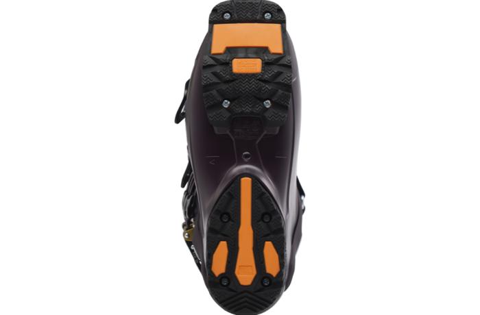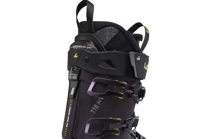 This is the essence of Shadow’s performance claim, that less flex input is required to produce big ski control results. The way the cuff is fixed to the lower shell at four points with two elastomer dampeners provides an immediate linkage of foot to ski without feeling rigid underfoot, and the cuff’s rear spine and lower shell interact along the gliding tongue-in-groove Suspension Blade. Testers report (again) that this cuff-to-shell configuration offers a very smooth-feeling but shortened flex range that communicates both fore-aft and lateral messages to the ski immediately.