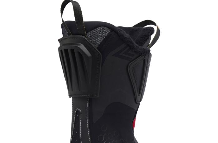 The flex feel of the Shadow 115 MV is both a fit success and a byproduct of the shell’s performance-minded design elements. The RBT, or Reactive Boost Tongue, cushions the shin with a gas-bubble filled interior tongue material that testers loved for the padded push they could exert against the cuff without any bite. For testers this soft feel against the shin married-up with the firmer, shorter flex travel of the cuff for an ideal blend of shock absorption and ski tip response.
