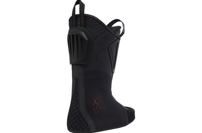 The Auxetic liner is marked (literally) by hexagonal, etched cuts in the exterior material which can expand slightly to allow for point-specific stretch points around bony or wide spots. The result is less peak tension points in those areas which makes for a shockingly even and comfortable feel without a packed-out or loose sensation. Some testers mistake the lack of hotspot pressure as general looseness until they ski the boot and feel held in place, just comfortably so.