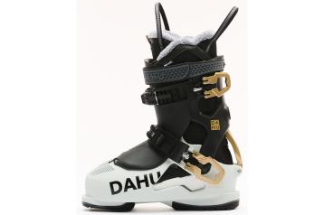 Speaking of the inner boot and exterior shell coming together--that is the unique super power of the Dahu concept. The liner can remain mated with the three-piece shell, where the underside grooves of the Cambium Boot's outsole interlock with the ribbed structure of the exo-shell's base, in which case testers simply loosen the laces to get in, then snug them up, stowing the rolled up coil of laces in a handy elasticized pocket on the tongue, close up the shell around the inner boot with two oversized buckles and a traditional Velcro power strap, and then off they go, time to ski. Or, a skier could choose to wear the inner boot separate from the shell for ease of walking or driving, then slide it (still on the foot) into the exterior frame, buckle and go. A pretty cool solution for any skier who wants or needs to be as ambulatory around a ski resort as they may be actively sliding on snow.