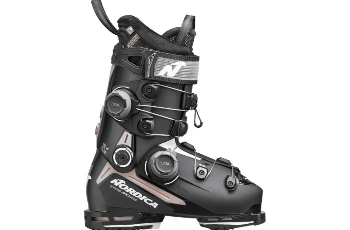 The Nordica Speedmachine has always been on or near the podium for our women’s test team and this year marks another repeat medal performance as one of the top boots in the stacked, medium-width, all-mountain category. All new this year is the Speedmachine 3 115 W BOA DD, and our team says yes, it has some bodacious curves, but that’s not what the DD means. That’s Nordica-speak for a BOA system on both the shell and now, the upper cuff too—Dual Dial—and testers definitely dig it.